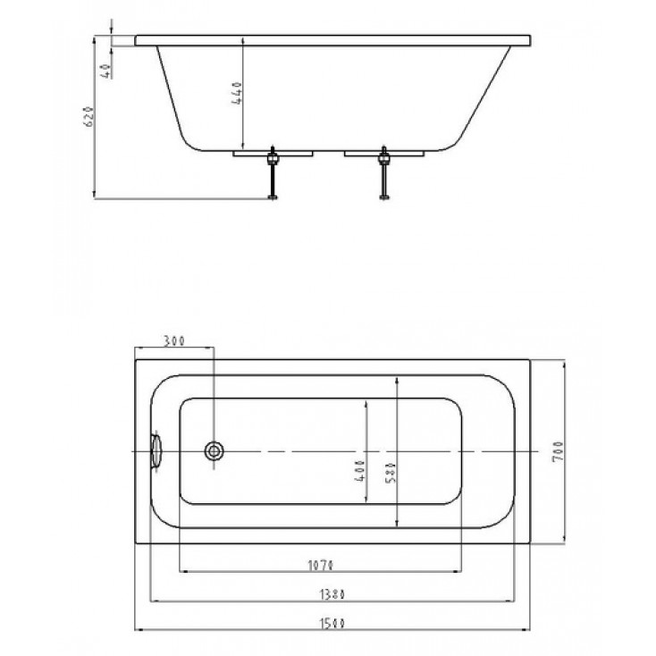 Ванна акриловая BELLA корыто прямоугольная 150*70 см Azario