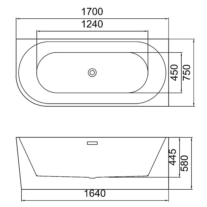 Ванна акриловая La Blanco 1700*750*580 R пристенная в компл. с сиф. и мет. рамой AZ-6724-1CR Azario