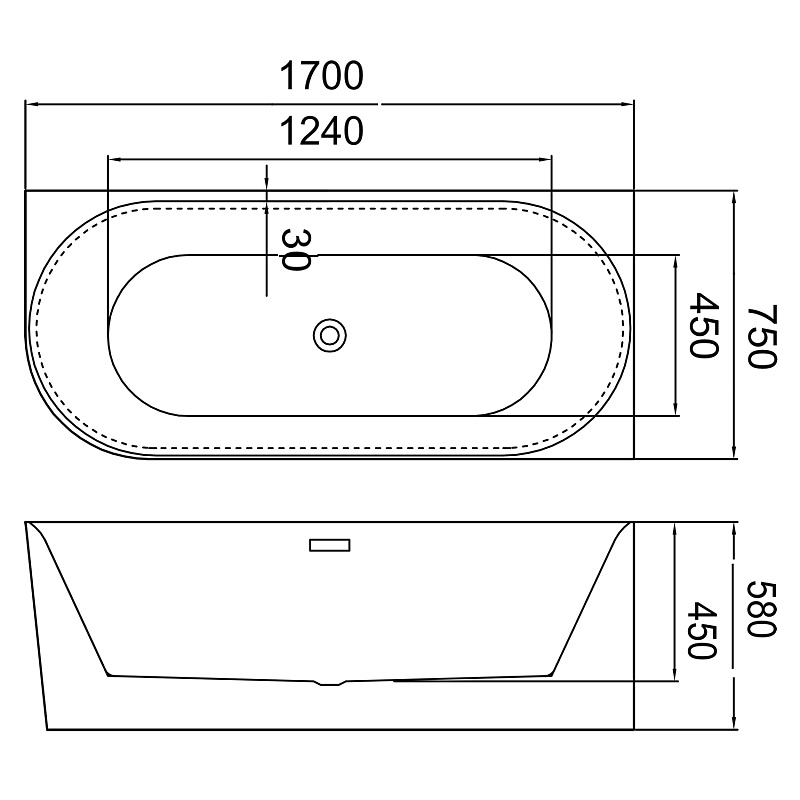 Ванна акриловая Rio Grande 1700*750*580 R пристенная в компл. с сиф. и мет. рамой AZ-6724-2R Azario