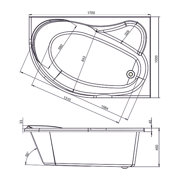 Ванна акриловая Ялта 170*100 левая Mirsant