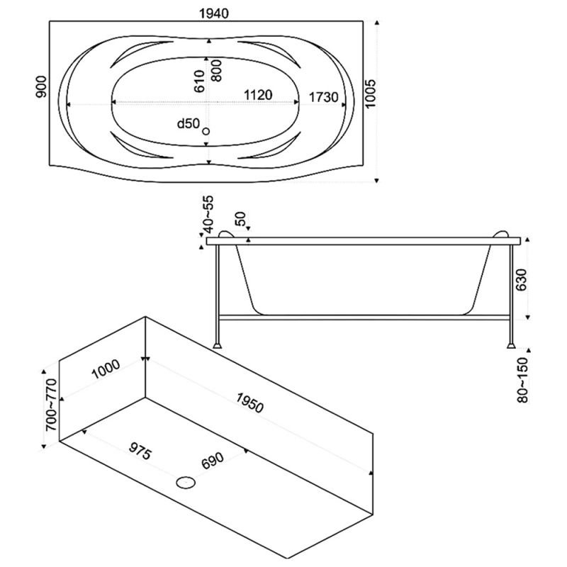 Ванна Фиеста 1940*900 без г/м без экрана ST/Bas