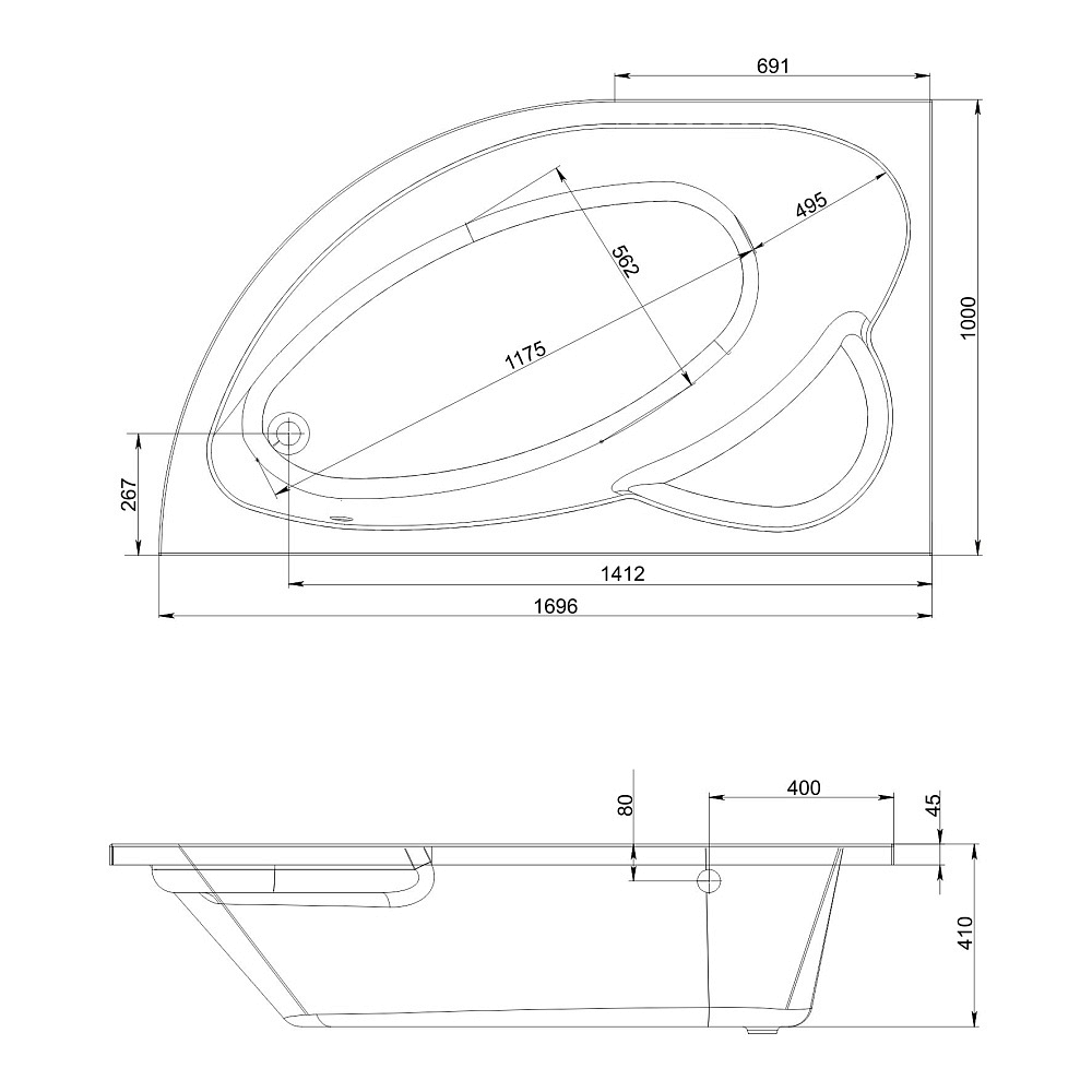 | Форма | Асимметричная |