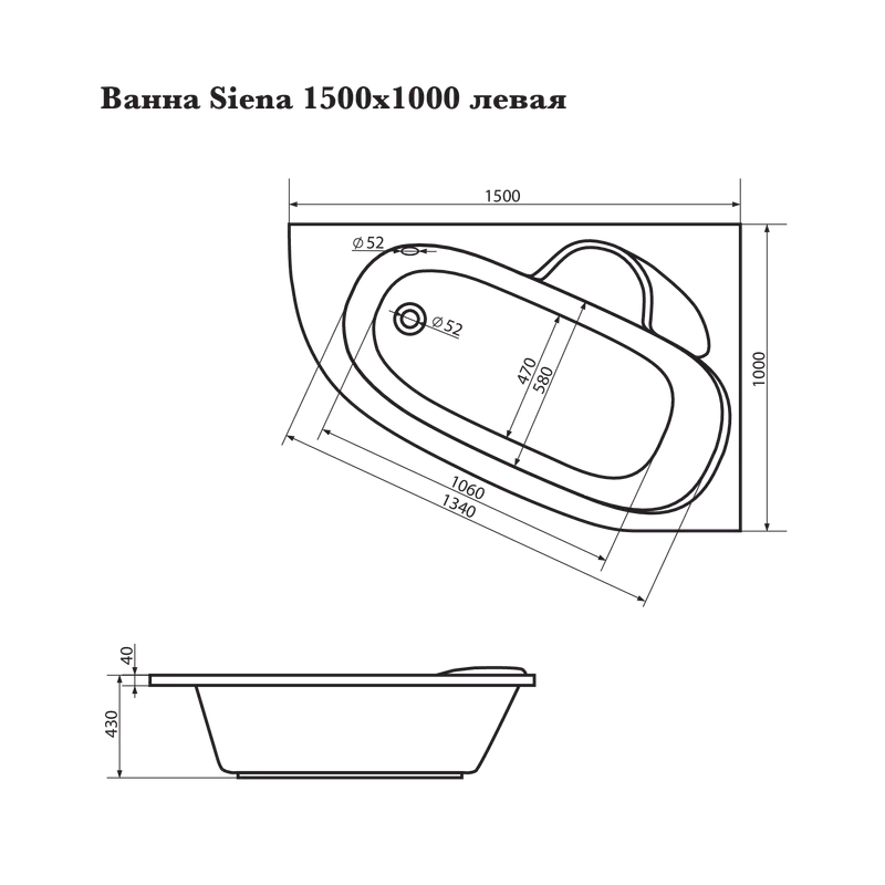 Ванна корыто Siena асимметричная левая 150*100 белый Corpanera