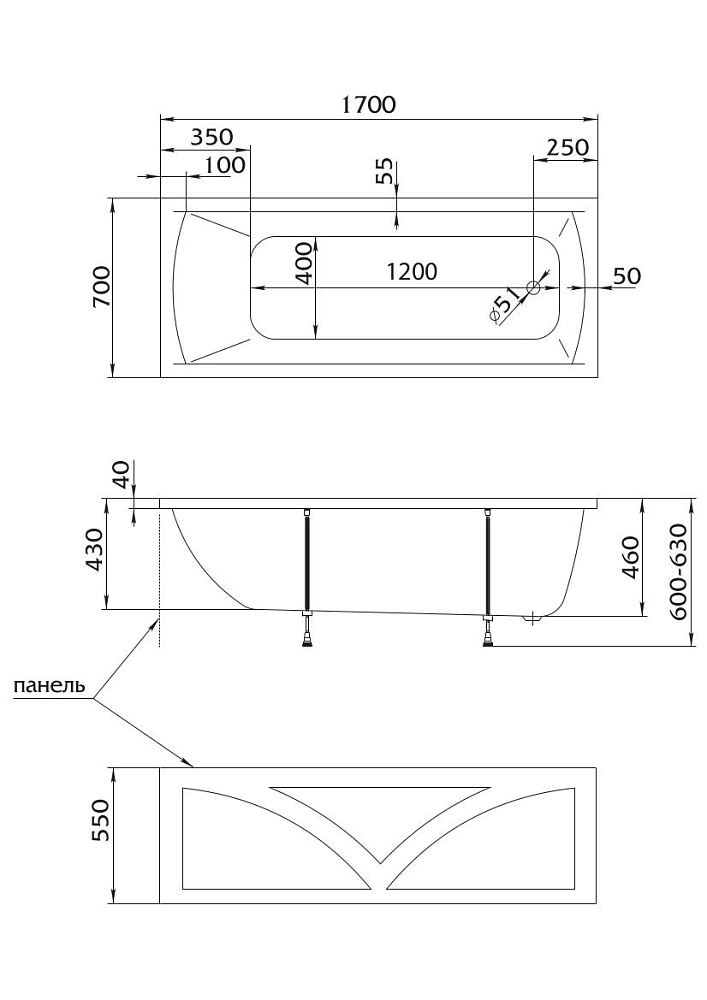 Ванна Modalia 170*70 акриловая Creto