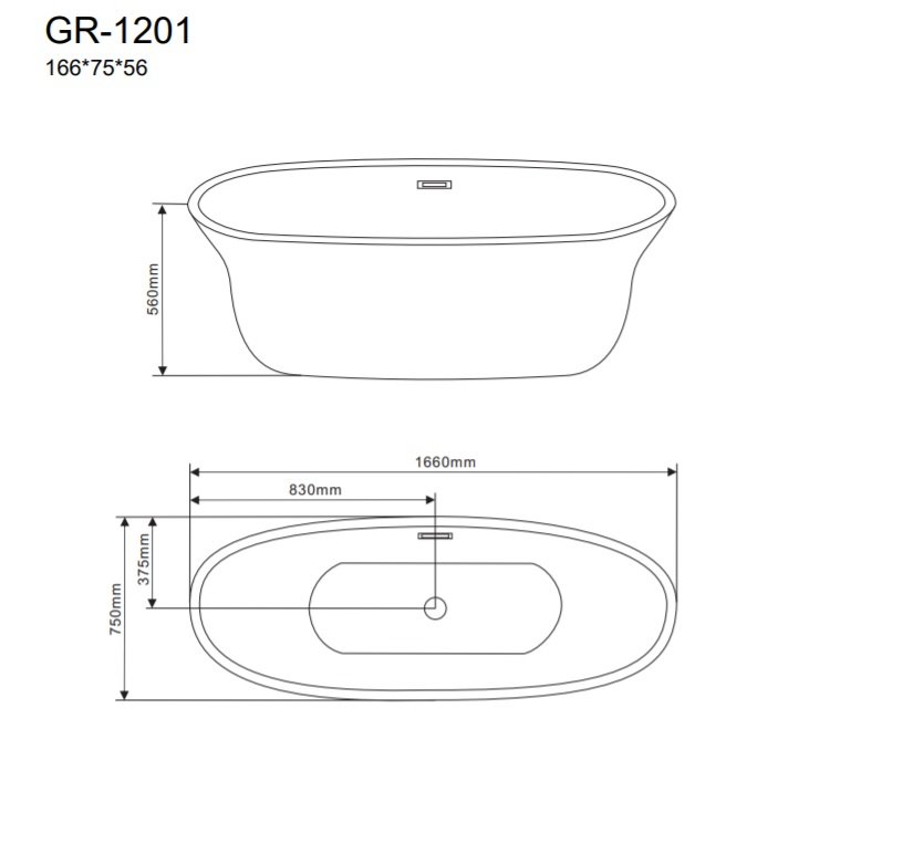 Ванна отдельностоящая GR-1201 (166x75x56) 1 место GROSSMAN