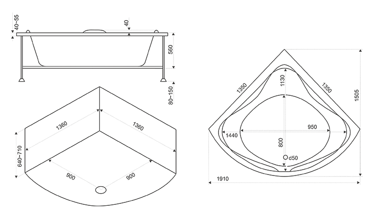 Ванна Риола 1350*1350 ST/Bas