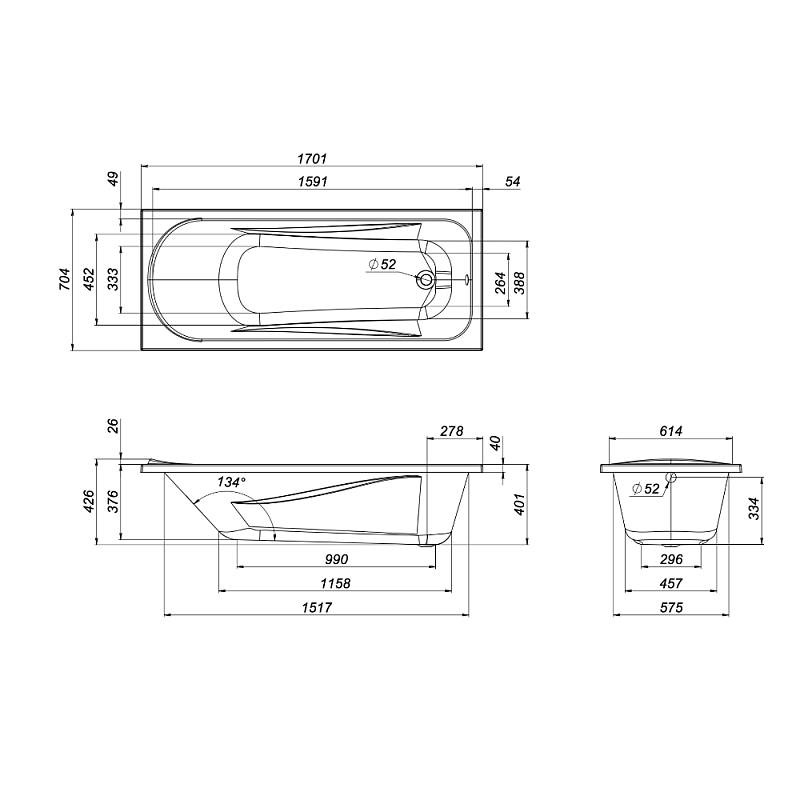 Ванна Sense New 170*70 без панели AM/PM