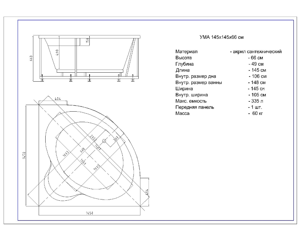 Ванна Ума 145*145см Aquatek
