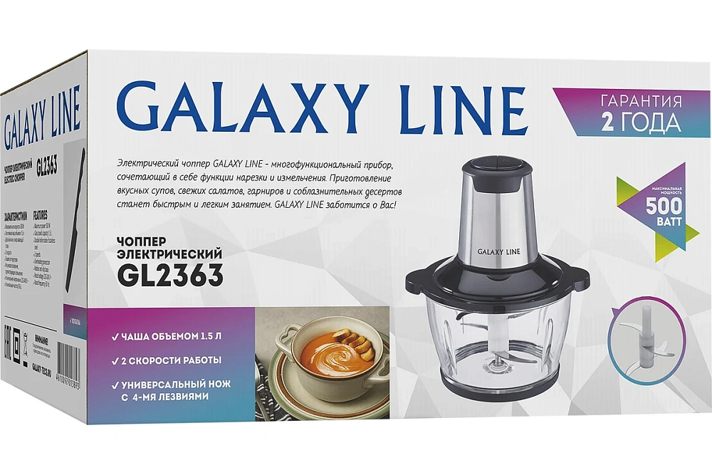 GALAXY LINE GL2363 имеет оптимальную мощность 500 Вт и 2 скорости работы, что позволяет измельчать различные по плотности продукты.