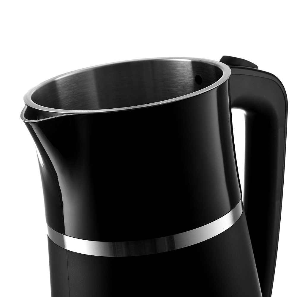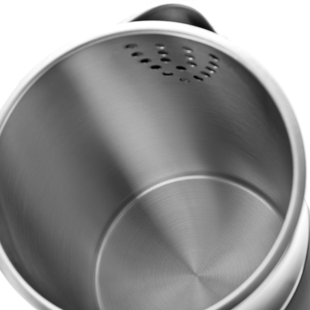 Корпус выполнен из нержавеющей стали с пластиковым покрытием Cool Touch, которое остается холодным при нагревании. А при отсутствии воды и при закипании чайник отключится самостоятельно.