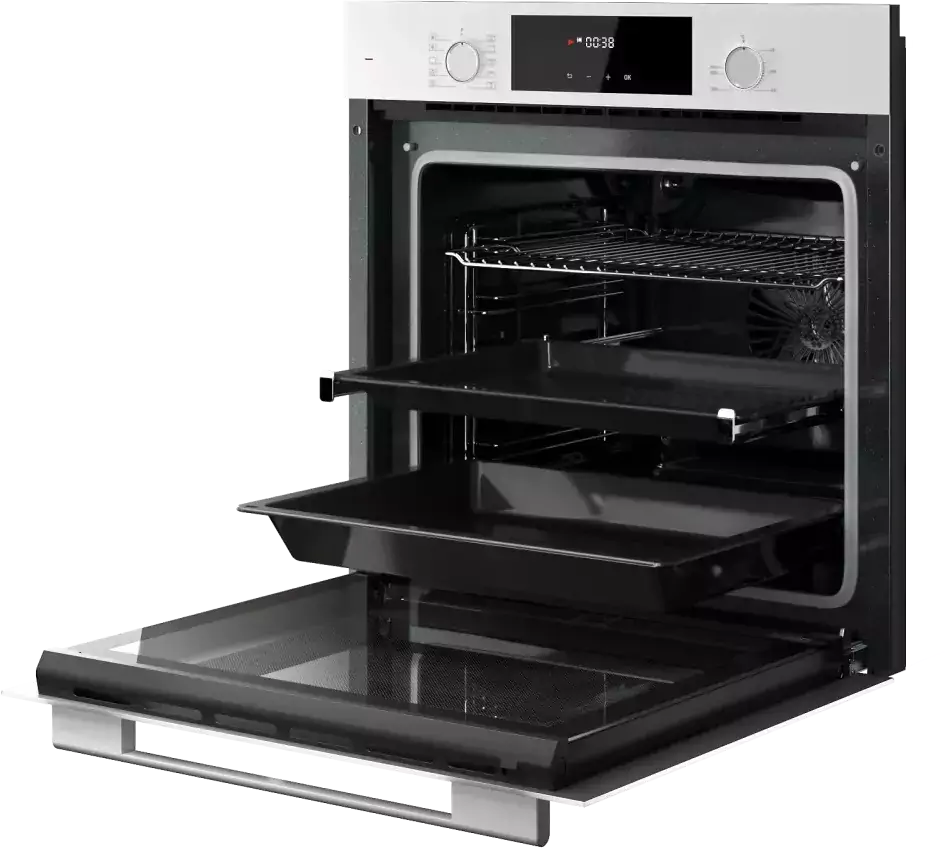 Дизайн модели выполнен в современном стиле: белый корпус и фурнитура из нержавеющей стали. Переключатели устройства выполнены в форме поворотных ручек, а управление осуществляется с помощью сенсорного программатора и цифрового дисплея. Также в модели предусмотрены часы и таймер, что значительно упрощает процесс приготовления пищи. Особенностью данной модели является система очистки – гидролизная. Благодаря этому, уход за духовкой значительно упрощается. Внутренняя поверхность покрыта эмалью Crystal Clean, которая облегчает процесс очистки. Дверца духового шкафа съемная, а внутреннее стекло также можно снять для удобства очистки. В комплекте с устройством идут стандартный противень и решетка для гриля. Духовой шкаф Kuppersberg HF 609 W – это надежное и функциональное устройство, которое обеспечивает высокое качество приготовления пищи и удобство в использовании.