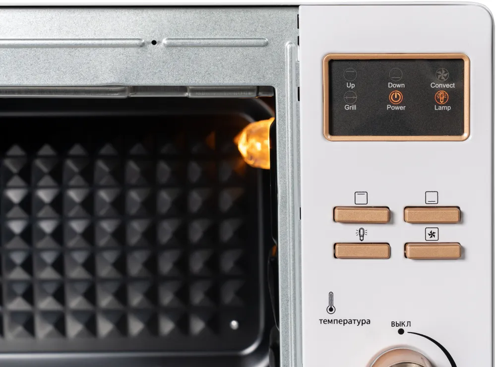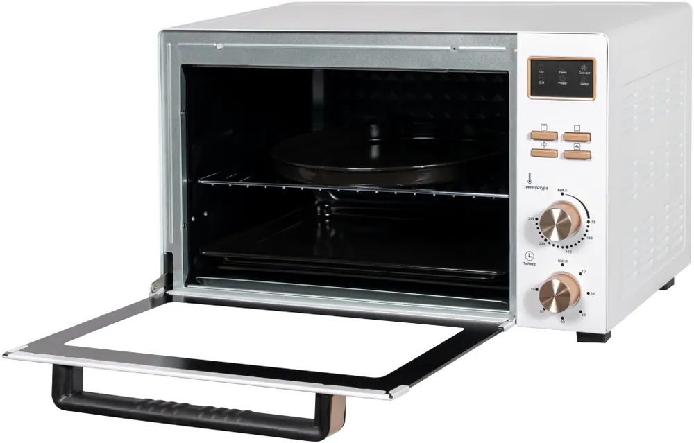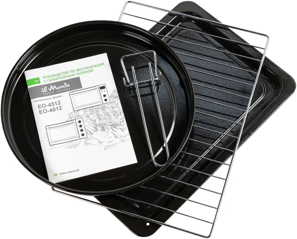 | Комплектация | Печь / прямоугольный противень / круглый противень / хромированная решетка / инструкция / гарантийный талон |