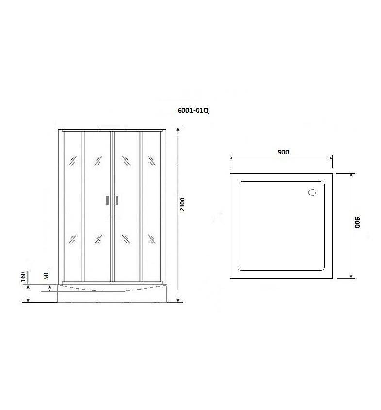 Душ. кабина NG-6001-01Q (900*900*2100) низ. поддон 16 см стекло прозрачное 4 места Niagara