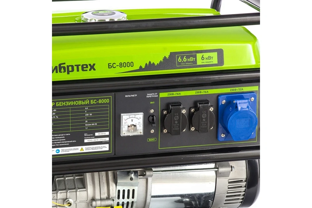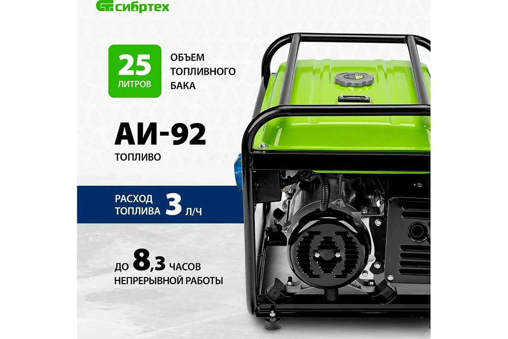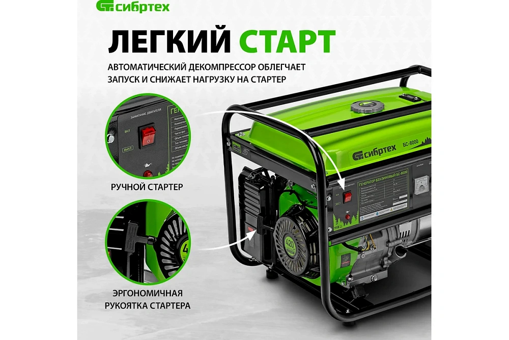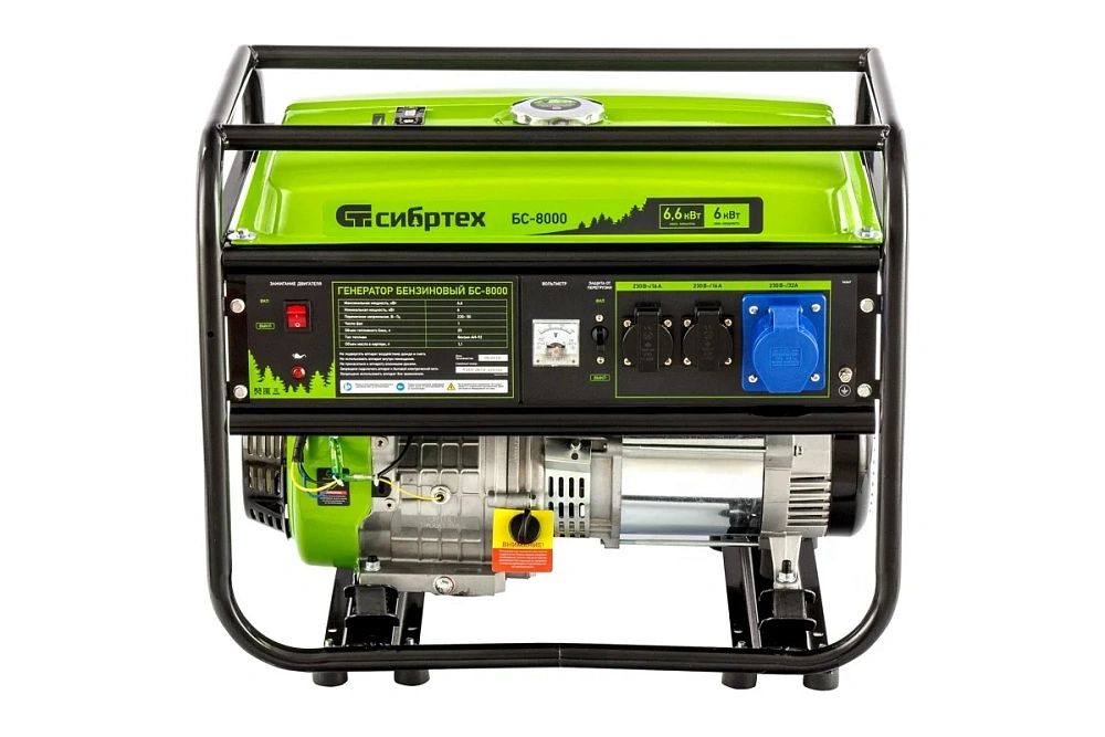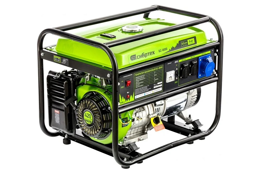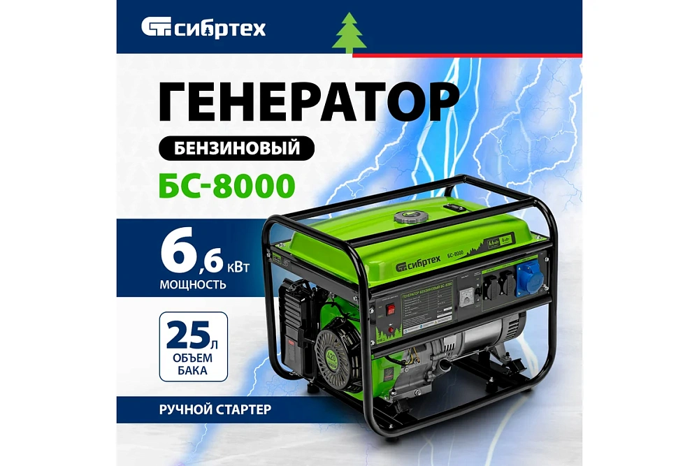 Генератор бензиновый БС-8000 6,6кВт 230В 25л Сибртех 94547