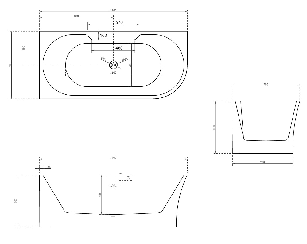 Ванна акриловая AB9335-1.7 L Abber