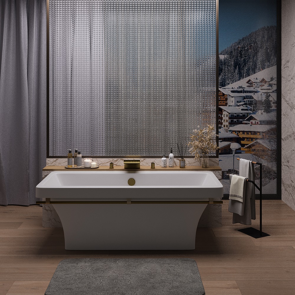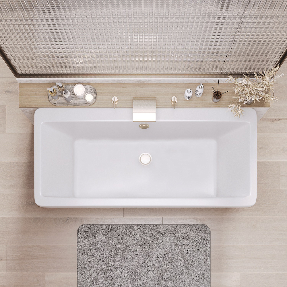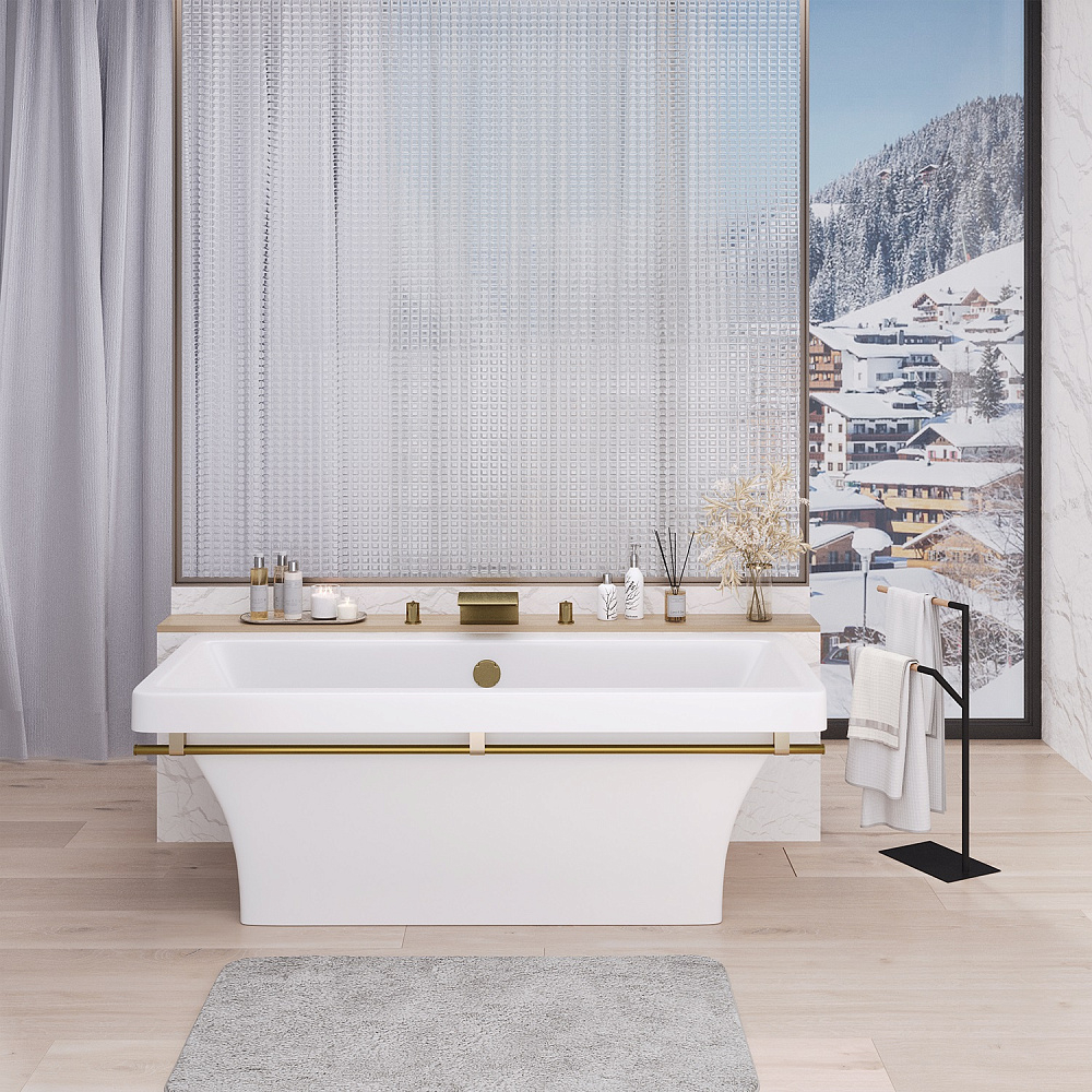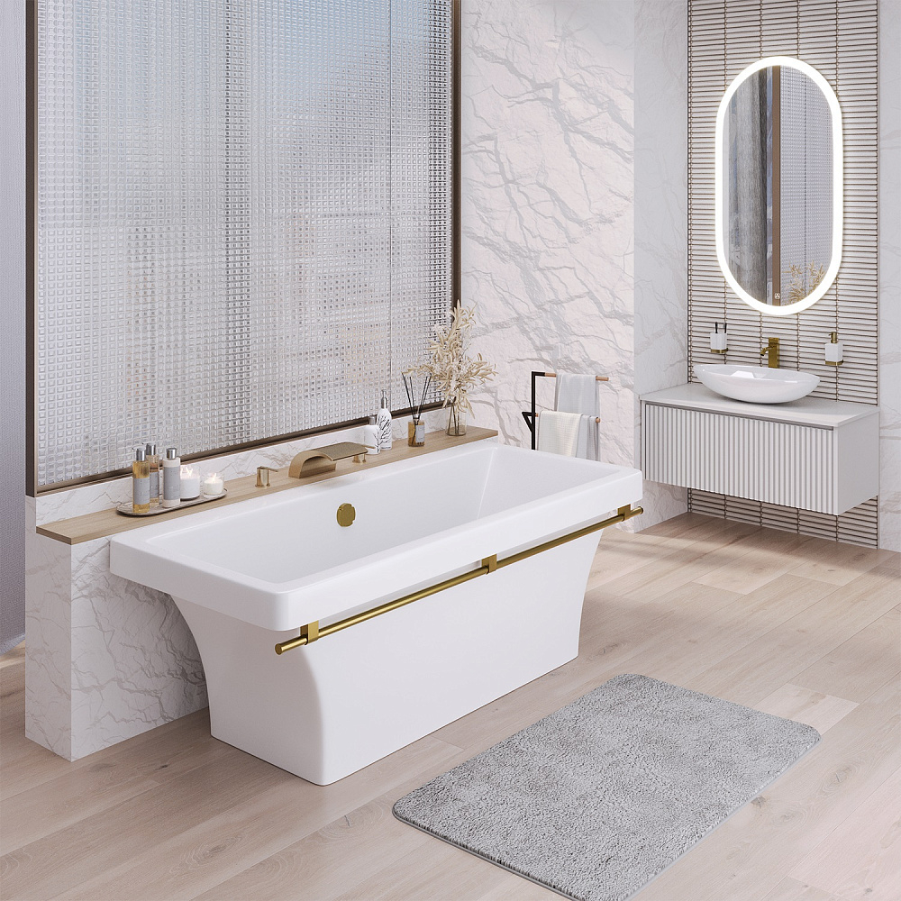 Ванна Crete 180*80*65 каменная белая хром полотенцедержатель AQUA DE MARCO
