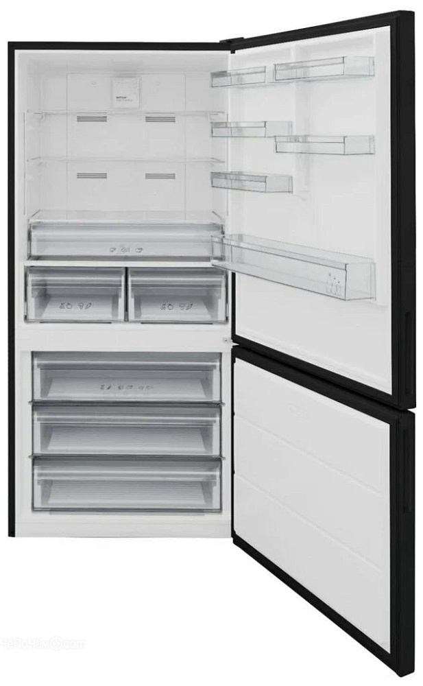Данная модель BF492NFED продается в черном цвете, отлично вписывается в современный интерьер кухни, оснащена нижней морозильной камерой с тремя ящиками внутри. Общий полезный объем холодильника составляет 461 литр, из них холодильная камера 333 литров, а морозильная 128 литров.