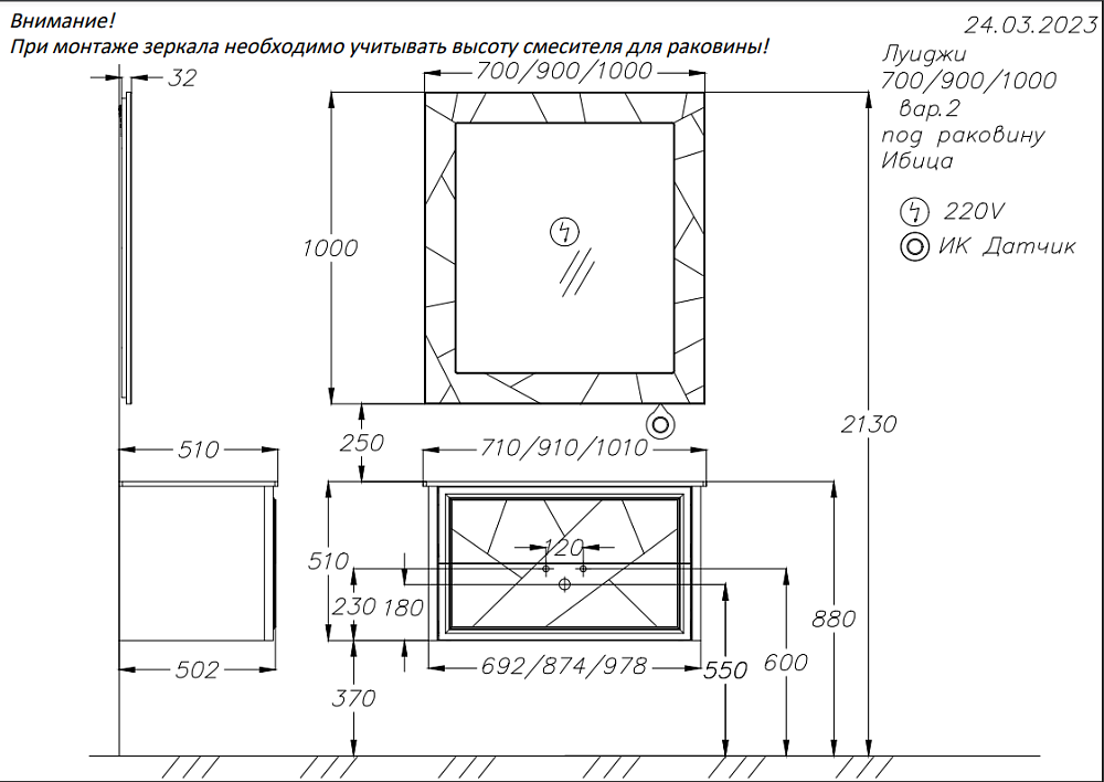 | Размер зеркала (ШхВхГ), см | 90х100х3.2 |