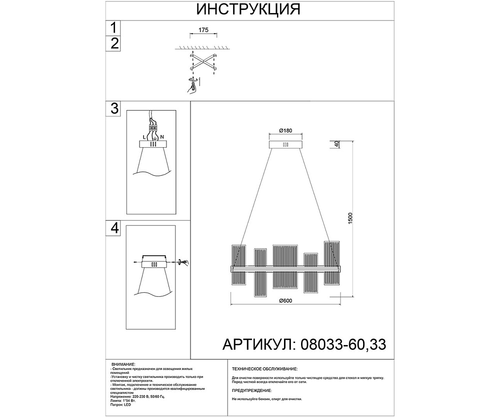 | Диаметр потолочной чаши, мм | 150 |