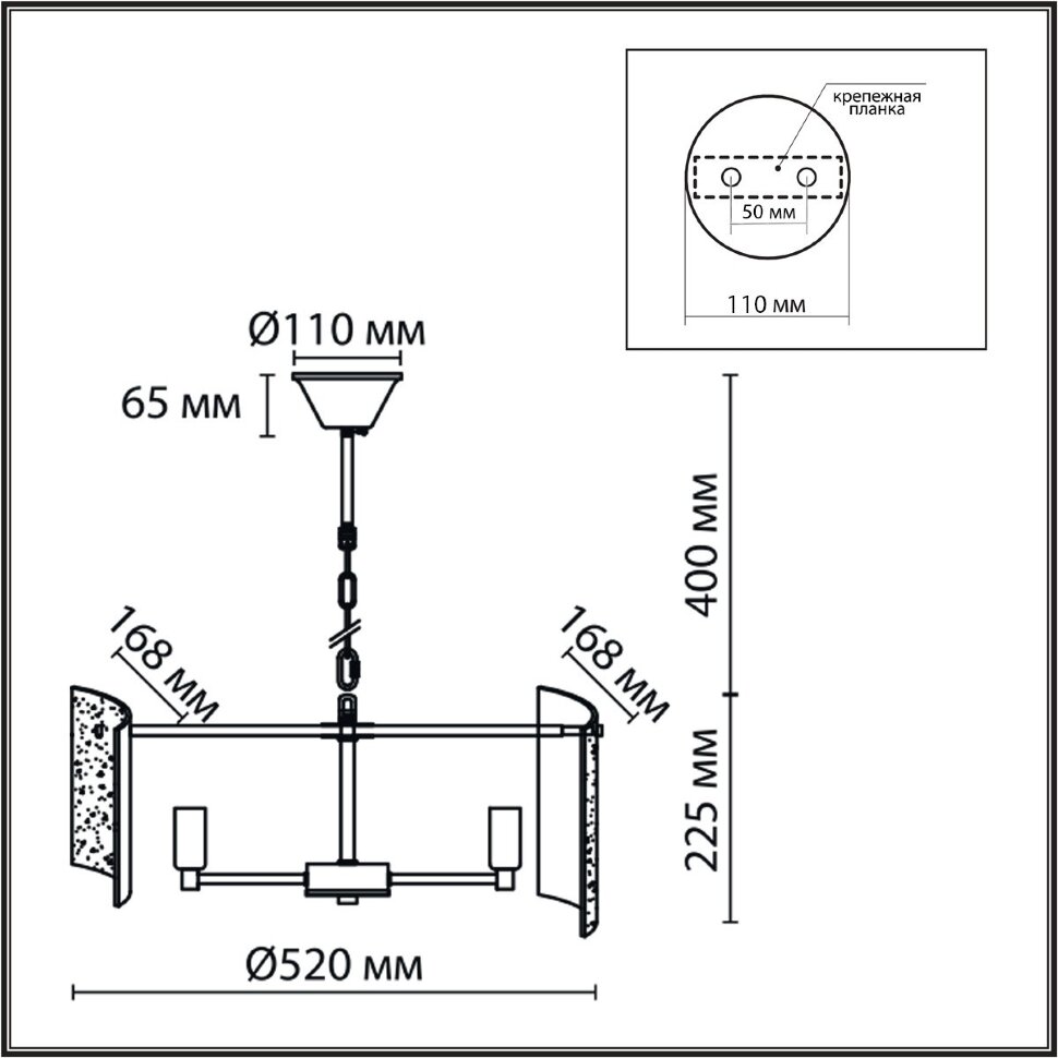 | Высота потолочной чаши, мм | 65 |