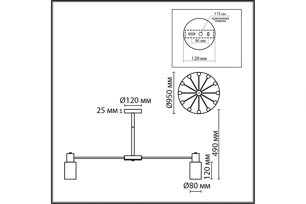 | Тип крепления к потолку | Планка |