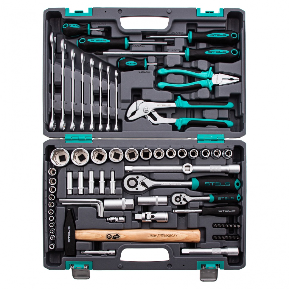 Набор инструментов пластиковый кейс 1/2 1/4 CrV 76 предмета Stels 14104