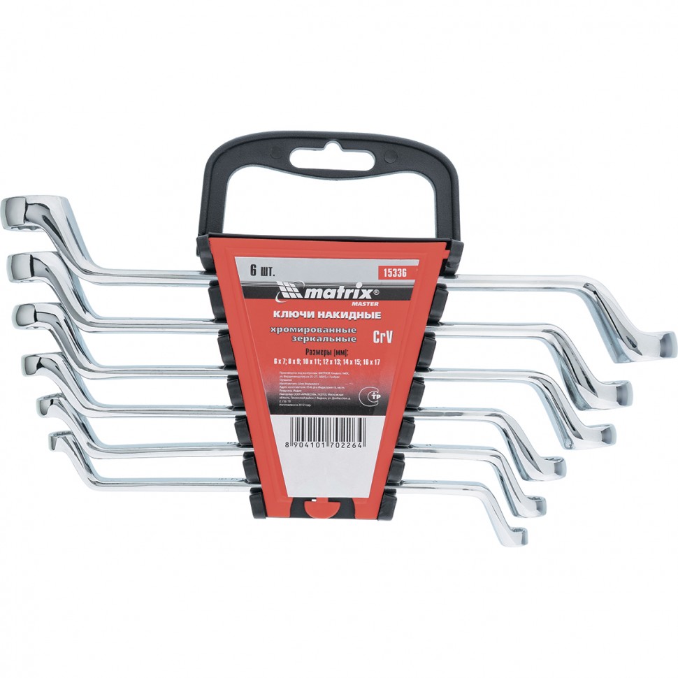 Набор ключей накидных, хромирование Matrix 6-17мм CrV 15336