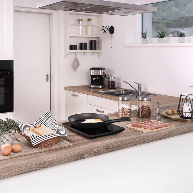 В путешествии, на вечеринках или на небольших кухнях прочная одинарная индукционная варочная панель станет незаменимым помощником. Варочная панель изготовлена из высококачественного стекла и обеспечивает быстрое и равномерное распределение тепла. Современный дизайн в сдержанном черном цвете придает устройству элегантный вид. Ее также можно использовать в качестве варочной панели за столом или для готовки вживую в сфере общественного питания. Оснащена 10 настройками температуры, цифровым управлением со светодиодным дисплеем, функцией таймера и блокировкой от детей.