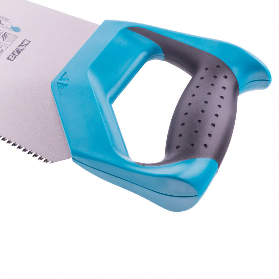 Двухкомпонентная рукоятка ножовки изготовлена из ударопрочного пластика, а эргономичная форма делает ее комфортной для рук даже при интенсивном пилении.