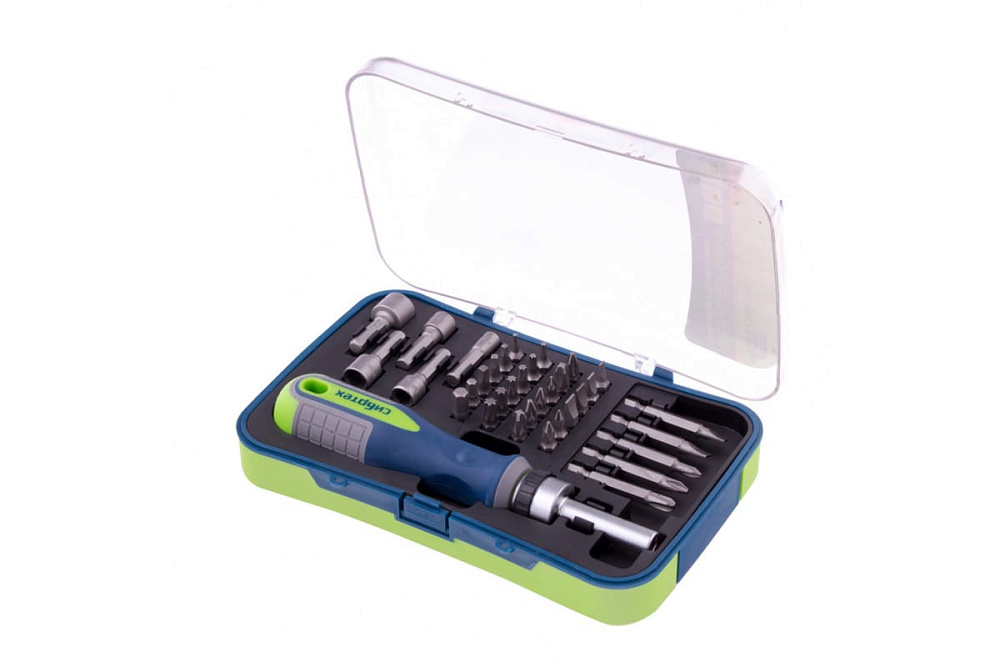 Отвертка реверсивная с набором бит Сибртех 35шт 13337