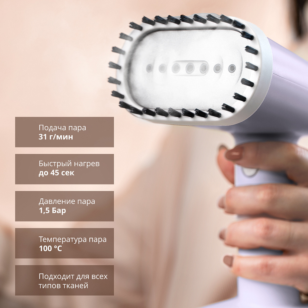 При этом ткань не растягивается и не деформируется. Горячий пар до 31 г/мин не только разглаживает, но и дезинфицирует ткань, очищает от загрязнений.