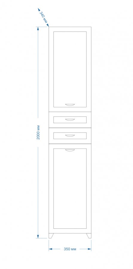 Пенал Дрея 35 L белый с 2 ящиками с б/к белая эмаль Misty