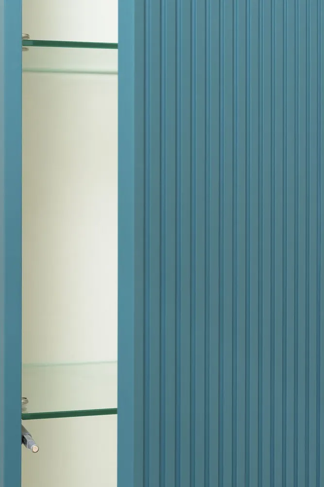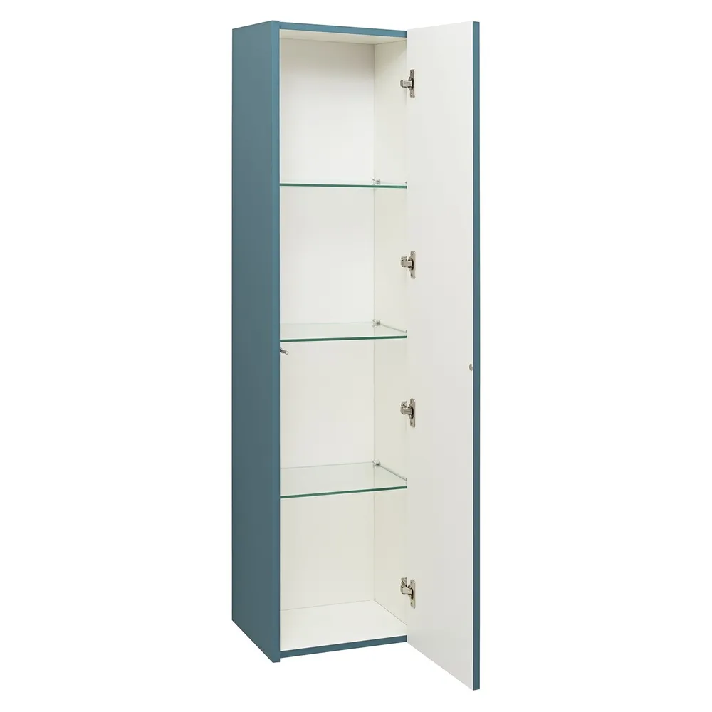 Подвесной шкаф-пенал MONACO 35см /аквамарин/ с одной распашной дверью, которая открывается благодаря механизму Push-to-open. Стеклянные полки на хромированных полкодержателях с фиксатором придают модели изящность и практичность.