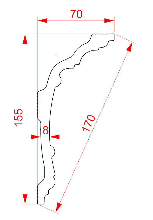 Плинтус потолочный GPL-8 155*70 (12шт)