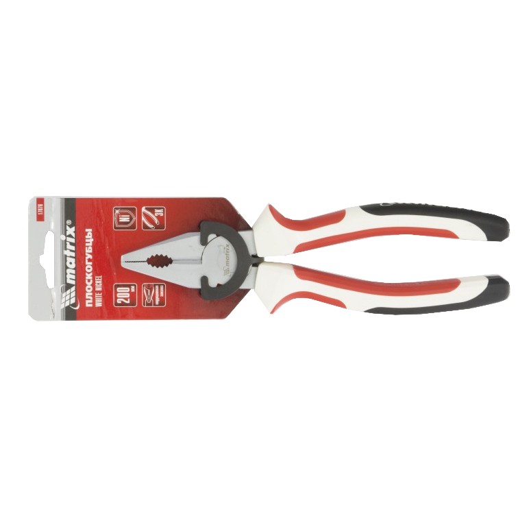 Плоскогубцы никелированные трехкомпонентные рукоятки White Nickel 200мм Matrix