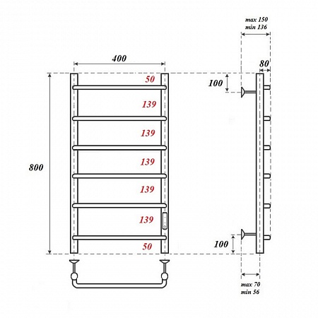 | Комплектация | Полотенцесушитель - 1 шт, кронштейны для крепления к стене - 3 шт, сетевой кабель - 1 шт, комплект скрытого подключения - 1 шт, паспорт/гарантийный талон - 1 шт |