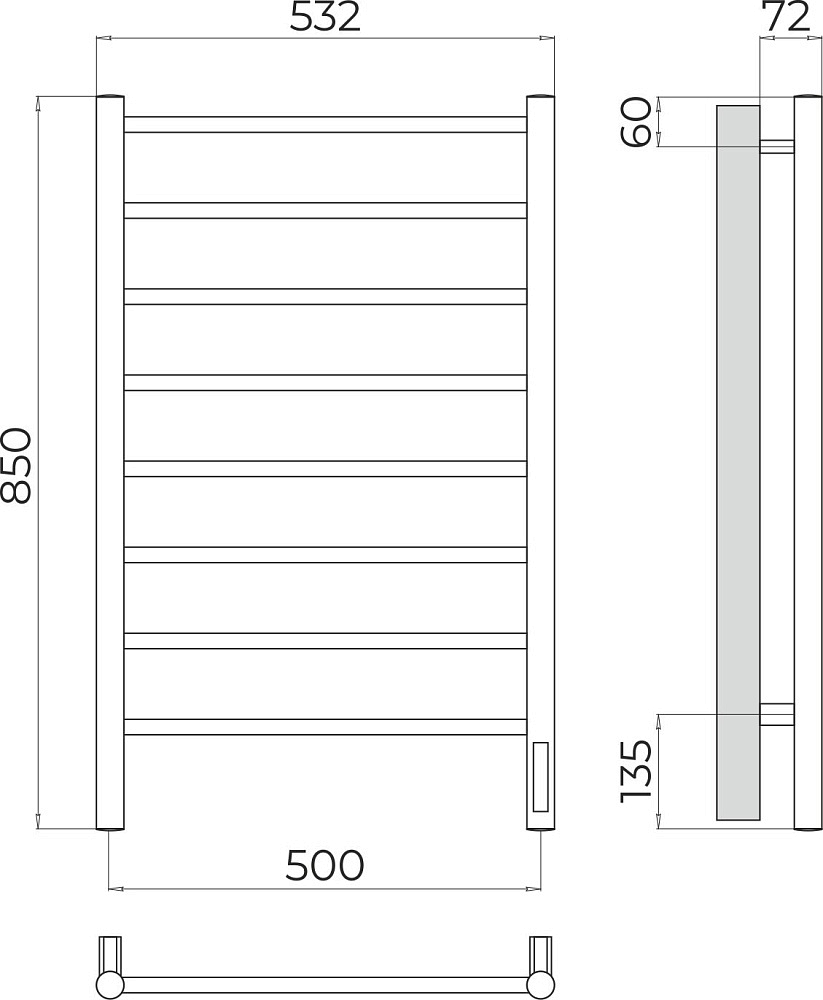 Полотенцесушитель Terminus Аврора П8 500*850 Электро Quick touch