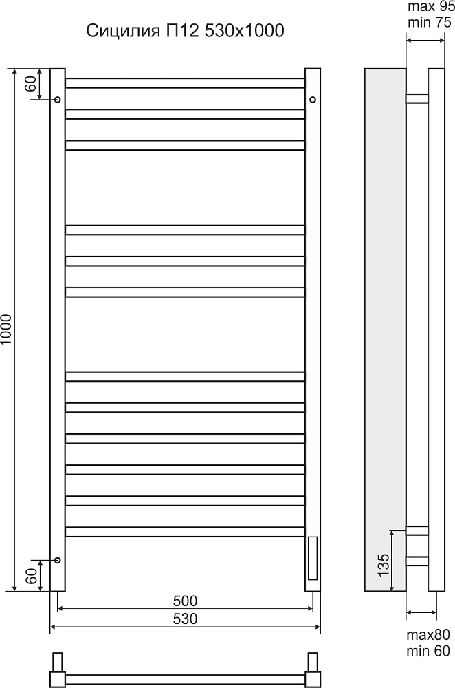 Полотенцесушитель Terminus Ватикан электро П12 500*1000(6+3+3)