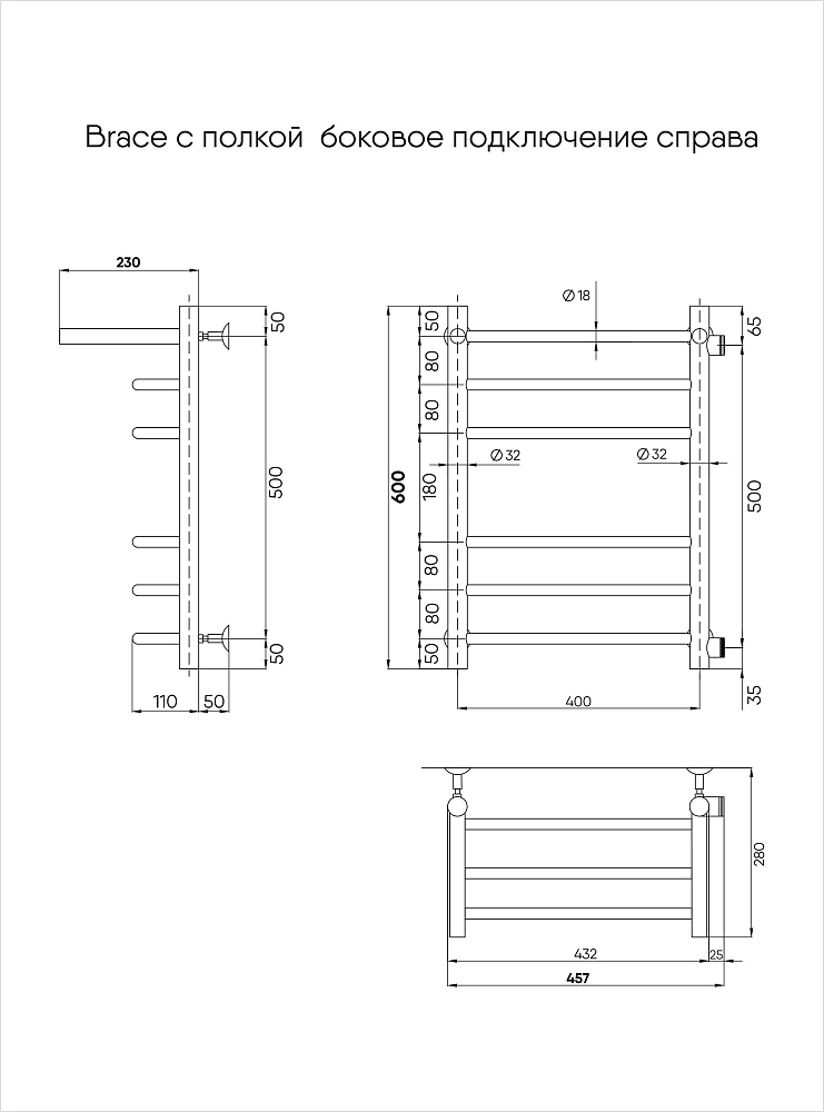 Полотенцесушитель Indigo Brace б/п 80/50 к-1. Полированный