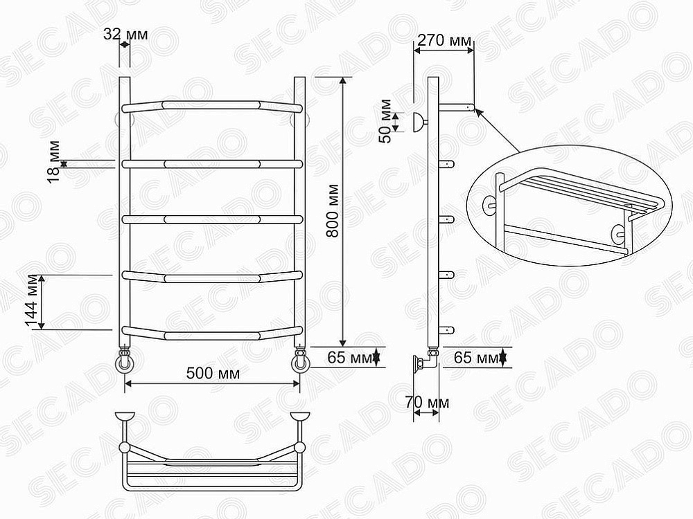 Полотенцесушитель латунный Secado Агата3 50х80(32/18)