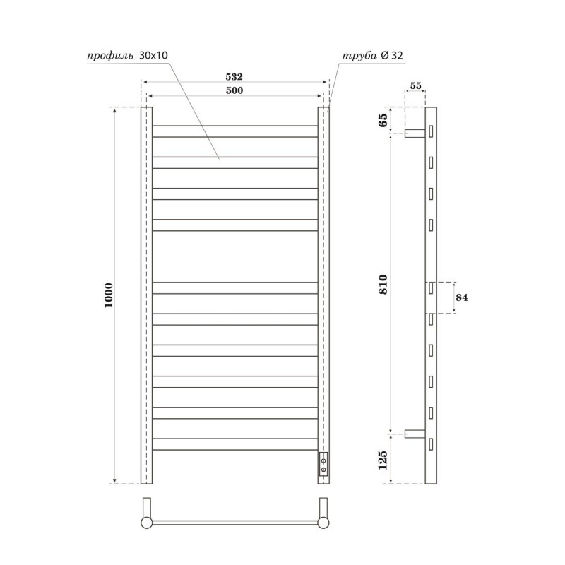 Полотенцесушитель Point PN16850B П10 Селена 500*1000 диммер справа черный
