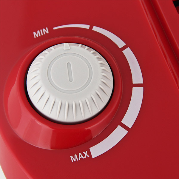 Компактный пылесос легко помещается в небольших нишах и специальных отсеках шкафов. Его большие кнопки можно нажимать ногами. Поворотный регулятор позволяет плавно изменять мощность, выбирая оптимальную силу всасывания для каждого типа покрытия.