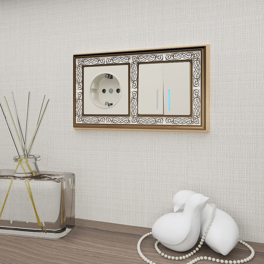 Рамка на 2 поста золото-белый WL77-Frame-02 Palacio 041160