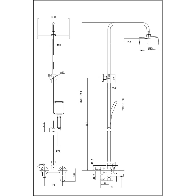 Душевая колонна Arizona со смесителем для ванны с поворотным изливом прямоугольная AZ-20BS Azario