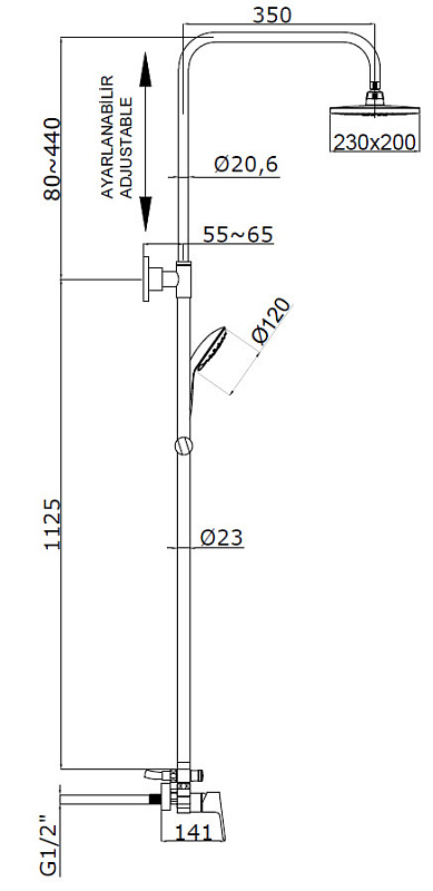 Душевая колонна Treya со смесителем для душа AZ-15780121 Azario