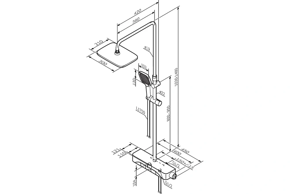 Душевая система с ванно-душевым смесителем-полкой и термостатом AM/PM F078F300 Func