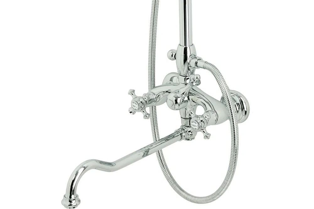 Душевой настенный гарнитур (см-ль д/ванны/колонна/верхний душ/шланг/ручной душ), хром 32121 Migliore