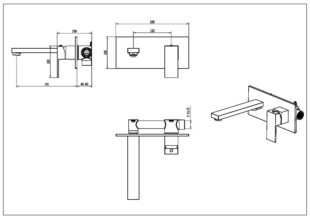 Смеситель для умывальника из стены Qubic Matt Gold 475-MG Boheme
