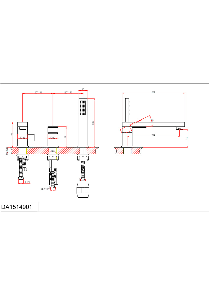 Смеситель на борт ванны Bayern Liszt хром DA1514901 D&K