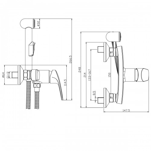 Смеситель с гигиеническим душем RS45-52 Rossinka